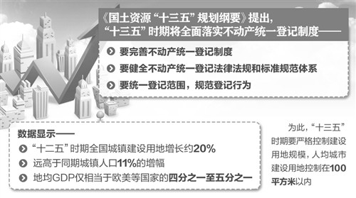 國土資源部今天公布的《國土資源“十三五”規(guī)劃綱要》提出,“十三五”時(shí)期將全面落實(shí)不動產(chǎn)統(tǒng)一登記制度。