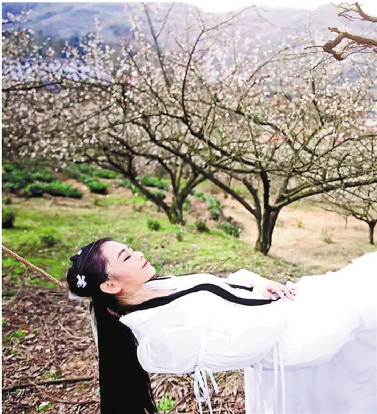 浙江在線03月22日訊(錢江晚報通訊員陳玉婷 記者苗麗娜)盛開的香雪梅海間,一個女孩白衣勝雪。或舞劍瀟灑不拘,行云流水;或輕曳秋千,靈動輕盈;或側(cè)顏微笑,嬌美動人。