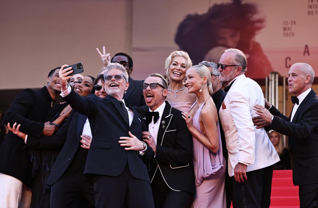 5月14日,在法國(guó)戛納舉行的第78屆戛納國(guó)際電影節(jié)上,美國(guó)導(dǎo)演克里斯托夫·邁考利(左五)等《碟中諜8:最終清算》主創(chuàng)人員在首映禮上自拍。新華社記者 高靜 攝