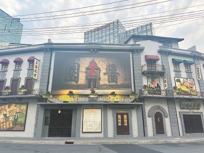 這兩天,乍浦路風(fēng)貌影視街入口處,當(dāng)年搭建“醬園”的地方又有了新變化。原先的《桃李劫》《馬路天使》的海報已撤下,掛起9米長、5米寬的《醬園弄》首發(fā)巨幅海報,電影拍攝時熱鬧打卡的城市記憶一時鮮活起來。勝利電影院門口的電子屏,滾動播放著《醬園弄》幕后花絮,為影片上映做宣傳。