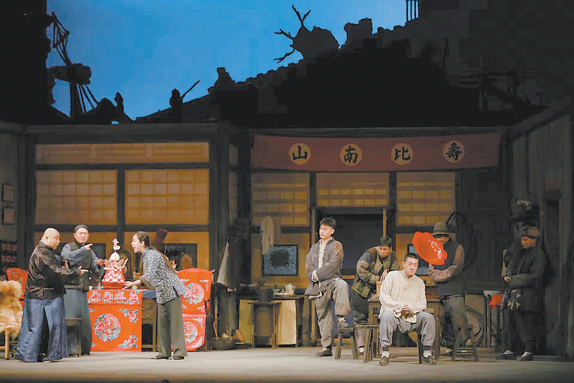 舞臺(tái)遠(yuǎn)處,老北京城門(mén)樓子的剪影橫亙天際;近處,木窗灰墻圍起一間極有年代感的平房;平房里,虎妞正在和父親劉四爺爭(zhēng)吵——這段經(jīng)典劇情出自家喻戶(hù)曉的《駱駝祥子》。