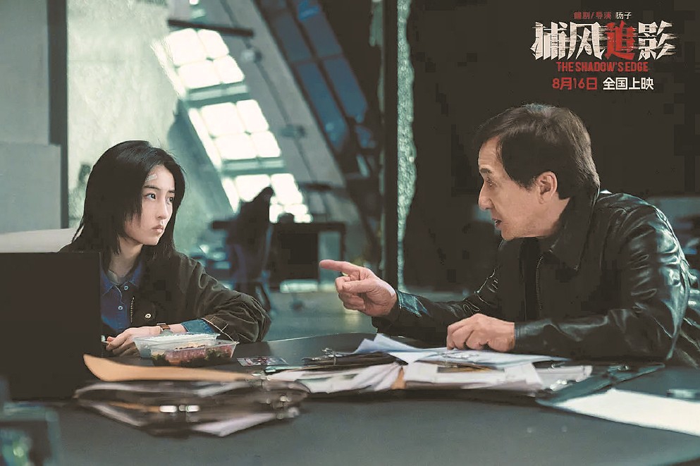 張子楓與成龍的對(duì)手戲被稱(chēng)為“《成龍歷險(xiǎn)記》真人版”:“像極了變老后的龍叔帶著長(zhǎng)大的小玉破案”。圖為《捕風(fēng)追影》劇照。