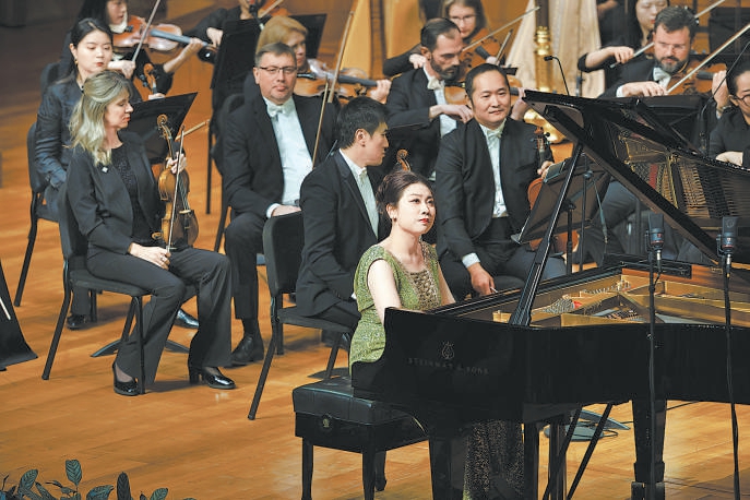 上半場(chǎng),鋼琴家羅維聯(lián)袂樂團(tuán),率先奏響《黃河》。這部脫胎自《黃河大合唱》,由殷承宗、儲(chǔ)望華等音樂家改編的協(xié)奏曲問世幾十年來久演不衰,已成為國(guó)際舞臺(tái)上中國(guó)交響樂的代表作品?!饵S河船夫曲》《黃河頌》《黃河憤》《保衛(wèi)黃河》4個(gè)樂章逐次遞進(jìn),以沉著雄渾的觸鍵和節(jié)奏,把抗日救亡的記憶、民族復(fù)興的光明推向最高峰。