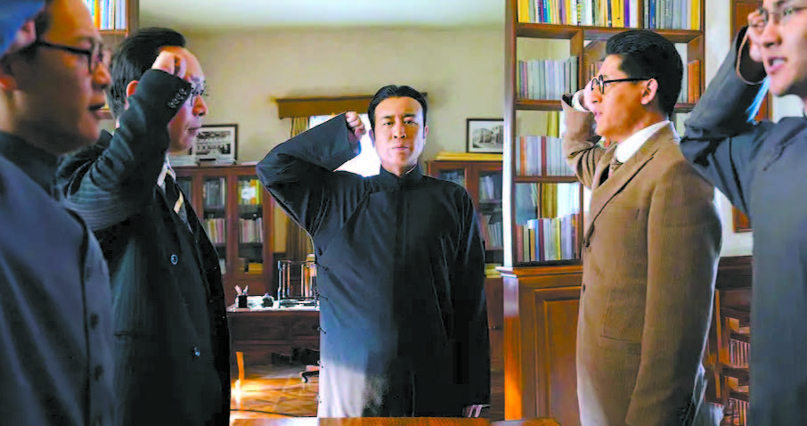 在《覺醒年代》的獄中戲里,陳獨(dú)秀聽聞學(xué)生言論后,先是做了一個看似悲痛的表情,隨即用手掩面卻發(fā)出笑聲,瞬間吸引了全體學(xué)生的注意,緊緊抓住全場的戲劇焦點(diǎn)。繼而,他雙目放光地大笑起來,雙手插兜向監(jiān)獄門口走去。動作的加入讓這層“笑”的能量再次升級。站在監(jiān)獄門口,他做了一個反常規(guī)的動作——用手來回拉拽監(jiān)獄的鐵門,身體被這個動作牽引著,發(fā)出了更為豪爽的“大笑”,與鐵門拖拽的“吱吱”聲形成獨(dú)特的交響。此時,陳先生才指著學(xué)生們說道:“你們不是一般的自大啊!”神情中并無刻板的指責(zé),而是一種混雜著嘲弄、心疼與從容的復(fù)雜意味。這種多義的面部表情處理,承載了更為豐富的“只可意會,不可言傳”的信息量。觀眾至此方悟,于和偉這一系列反常動作的設(shè)計用意,是通過陳獨(dú)秀覺得學(xué)生行為“幼稚得可笑”,來反襯他內(nèi)心的強(qiáng)大,體現(xiàn)其對革命道路艱巨性的清醒認(rèn)知。他敢于創(chuàng)造不按常理出牌的動作,最終總能將情緒準(zhǔn)確傳達(dá),以一人之能量瞬間與眾多對手“拔河”,并讓學(xué)生們心甘情愿地走出監(jiān)獄。這正是他“情理之中,意料之外”的角色自由創(chuàng)造的體現(xiàn)。