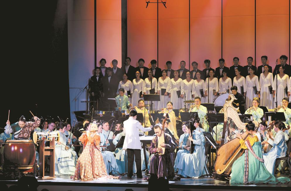 作曲家孔志軒分享了演出細(xì)節(jié),此次他優(yōu)化了第五與第六篇章?!暗谖迤隆讹L(fēng)骨錚鳴》擴(kuò)充原有結(jié)構(gòu),層層遞進(jìn)間讓風(fēng)骨內(nèi)涵更立體豐滿;第六篇章《星河共潮》則精簡(jiǎn)結(jié)構(gòu),凝練打磨各部分音樂形象,核心是凸顯中華民族屹立不倒的民族氣節(jié)?!?/p>