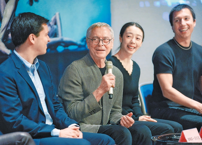 編舞大師諾伊梅爾(左二)來到國家大劇院。 北京日報記者 方非攝
