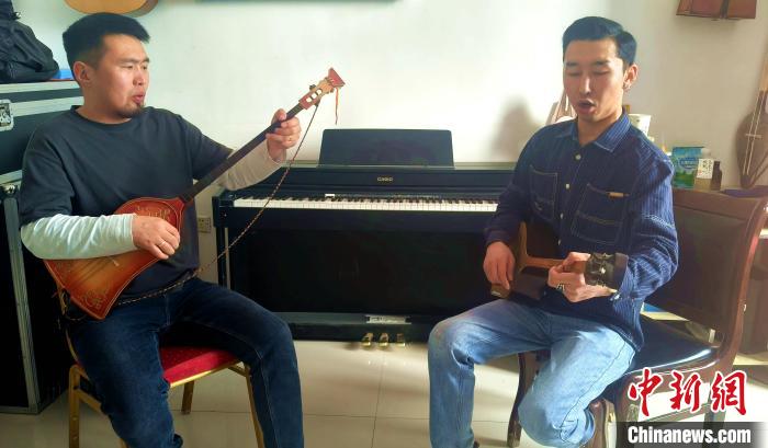 呼麥演員阿力同桑(右)和同事交流呼麥彈唱技法。和靜縣融媒體中心供圖 在工作期間,阿力同桑不僅能出色完成演出任務(wù),還通過教學(xué)方式傳播呼麥技藝?!坝泻芏嘞雽W(xué)習(xí)呼麥的年輕人聯(lián)系我,我通過‘線上+線下’的方式,給他們教授呼麥?!卑⒘νUf,他目前有20多位學(xué)員,疆內(nèi)疆外都有,還有幾個國外的。 朱俊博是青海省西寧市一名教育工作者,平時喜歡音樂。一個偶然的機會,在網(wǎng)絡(luò)上聽到阿力同桑的演唱視頻,瞬間被吸引。 朱俊博通過線上平臺結(jié)識阿力同桑,參與線上學(xué)習(xí),并從基礎(chǔ)發(fā)音開始。 “這種唱法可以調(diào)氣息,唱完后很精神?!敝炜〔┱J(rèn)為,呼麥有一種力量,讓人身心得到放松,學(xué)唱的過程中很愜意。 “多年來,和靜縣通過舉辦東歸那達(dá)慕大會、非遺講座、演出、展示展覽等活動,對呼麥的保護(hù)傳承效果不斷增強?!焙挽o縣東歸文化館非遺專干曲潔表示。 從非遺走向流行音樂 多年來,無論是在日常生活中,還是在文藝創(chuàng)作領(lǐng)域,呼麥這一歌唱藝術(shù)正日益受到大眾的關(guān)注。