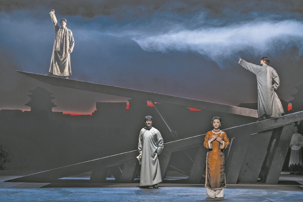 大型原創(chuàng)黃梅戲《延年和喬年》從安慶來(lái)到上海,用延喬兄弟二人的家鄉(xiāng)戲向他們致敬。圖為劇照。(演出方供圖) “《延年和喬年》在安慶演了17場(chǎng),全國(guó)巡演我想一定要來(lái)上海。”當(dāng)代黃梅戲表演藝術(shù)家、安徽再芬黃梅藝術(shù)劇院院長(zhǎng)韓再芬對(duì)記者說(shuō),“陳延年和陳喬年在上海犧牲,作為他們的家鄉(xiāng)人,我們想用黃梅戲的方式讓觀眾記住兩位少年英雄?!?/p> 恰逢安徽再芬黃梅藝術(shù)劇院成立20周年,8日晚,大型原創(chuàng)黃梅戲《延年和喬年》在美琪大戲院上演,也拉開(kāi)了“誰(shuí)料二十正風(fēng)華”2025年再芬黃梅·上海演出季大幕。 “青春是混沌初開(kāi),青春是綻放花苞”,《延年和喬年》序幕中的詠嘆奠定了作品浪漫主義的色彩。黃梅戲唱腔質(zhì)樸流暢,《延年和喬年》并沒(méi)有選擇用高亢激昂的曲風(fēng)來(lái)演繹革命題材,而是從劇種特色出發(fā),注重刻畫(huà)兄弟兩人的精神世界和情感故事。“延喬兄弟對(duì)于安慶來(lái)說(shuō),不僅是革命者,更是這座城的兒女,這里的人們對(duì)于他們有著深厚的愛(ài)戴和敬仰。所以在創(chuàng)作之初,我就決定一定要寫(xiě)情,以情動(dòng)人,在情之中尋找立意,這是創(chuàng)作的根本?!本巹∮鳂s軍說(shuō)。 在風(fēng)雨如晦的年代,陳獨(dú)秀的兩個(gè)兒子陳延年和陳喬年懷揣著對(duì)國(guó)家和民族的無(wú)限熱愛(ài),毅然投身革命,他們的故事充滿了熱血與激情,展現(xiàn)了那個(gè)時(shí)代青年的擔(dān)當(dāng)與奉獻(xiàn)。電視劇《覺(jué)醒年代》的爆火讓延喬兄弟走進(jìn)觀眾心中。劇中,二人走向刑場(chǎng),望向鏡頭一笑,他們的純凈與勇敢讓無(wú)數(shù)人潸然淚下。 “二人的故居就在安慶大南門(mén)附近,自從對(duì)外開(kāi)放后,我經(jīng)常去那里?!薄堆幽旰蛦棠辍分酗椦蓐愌幽甑耐鯘晌鯇?duì)記者說(shuō),對(duì)于安慶人來(lái)說(shuō),他們是家鄉(xiāng)的驕傲??措娨晞r(shí),王澤熙就對(duì)劇中的黃梅戲片段印象深刻,如今用黃梅戲詮釋?zhuān)鯘晌蹩释麑⒓覈?guó)之情、父子之情、兄弟之情唱進(jìn)觀眾心里。 《延年和喬年》中,兄弟兩人的故鄉(xiāng)安慶,不僅僅是地理坐標(biāo),更是作品流淌的精神血液與情感密碼?!巴罱⒘夂?、倒扒獅、迎江寺、振風(fēng)塔”的反復(fù)吟唱,“大南門(mén)的牛肉包、江毛水餃、芝麻侉餅包油條、山粉圓子燒肉和雞湯泡炒米”的香氣彌漫在異國(guó)絕食抗?fàn)幍暮埂S^眾跟隨他們一同感受深切的鄉(xiāng)愁,看到立體、有血有肉的少年英雄。 “年輕人撐起這臺(tái)戲?!表n再芬介紹,劇中,除了延喬兄弟由90后演員擔(dān)綱,其余角色也大都由年輕人扮演。再芬劇院自成立以來(lái),韓再芬堅(jiān)持按照“全生大”的標(biāo)準(zhǔn)培養(yǎng)青年男演員——小生、老生、丑生都要能演,“個(gè)個(gè)都能演大戲,而且要有特色,這對(duì)黃梅戲包容性強(qiáng)的特色是極為重要的”。 10日晚,韓再芬也將“以老帶新”,為上海觀眾帶來(lái)有著黃梅戲“活化石”之稱(chēng)的《女駙馬》。《女駙馬》由安慶專(zhuān)區(qū)黃梅戲劇團(tuán)(安徽再芬黃梅藝術(shù)劇院前身)首創(chuàng)首演,麻彩樓、嚴(yán)鳳英等老藝術(shù)家塑造的馮素珍深入人心。韓再芬在傳承經(jīng)典版本的基礎(chǔ)上,融入影視化敘事節(jié)奏,將馮素珍女扮男裝、冒死救夫的傳奇演繹得既詼諧又揪心。劇中“為救李郎離家園”等經(jīng)典唱段朗朗上口,將喚起眾多上海觀眾的集體記憶。這部誕生于1958年的作品,歷經(jīng)60余年打磨,已成為中國(guó)戲曲“女性勇敢追求正義與真愛(ài)”主題的經(jīng)典注腳。(文匯報(bào)記者 王筱麗) (責(zé)任編輯:盧相汀) |