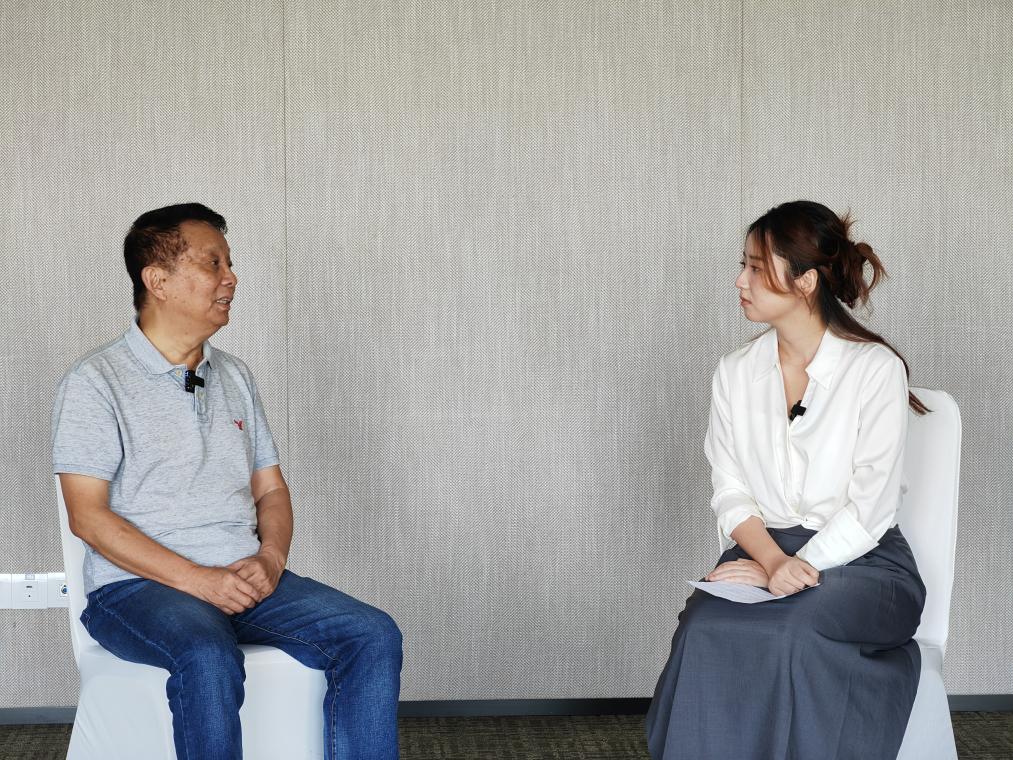 導(dǎo)演黃建新(左)接受記者專訪。新華社記者 鄧瑞璇 攝