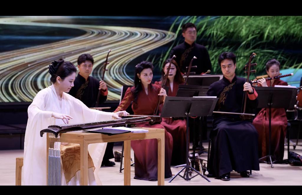 音樂會(huì)上,復(fù)刻春秋古制的古琴與珍稀老琴同臺(tái)亮相。古琴演奏家路寧攜手中央民族樂團(tuán)演奏家們,以《源》《神游》《清泠》《醉枕石》《云水吟》等8首全新編創(chuàng)作品為紐帶,讓古琴清微淡遠(yuǎn)的音色與大運(yùn)河“流動(dòng)史詩”的氣質(zhì)深度相融,完成跨越時(shí)空的對(duì)話。
