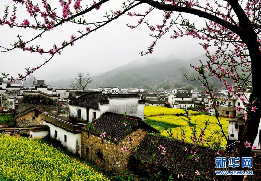 3月22日拍攝的江西省婺源縣段莘鄉(xiāng)慶源村春景。春回大地,江西省婺源縣鄉(xiāng)間油菜花、桃花、梨花競(jìng)相開放,與粉墻黛瓦的徽派民居相映成趣,構(gòu)成一幅幅美麗的春色畫卷。 新華社發(fā)(胡敦煌 攝)