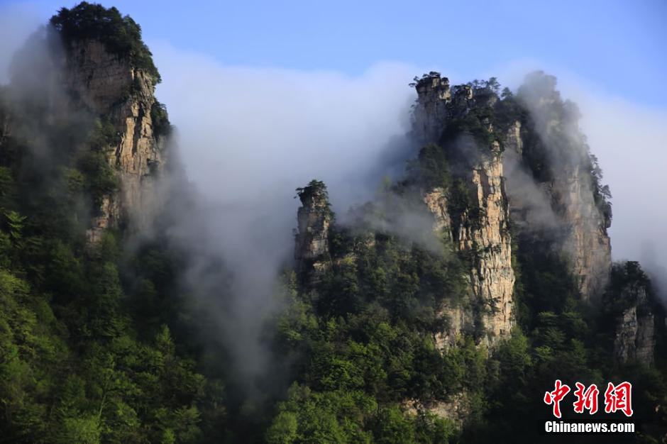 張家界武陵源雨后現(xiàn)“云瀑”