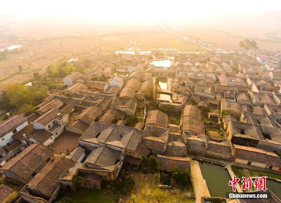 12月10日,航拍位于江西金溪縣有著600多年歷史的中國(guó)歷史文化名村、中國(guó)傳統(tǒng)村落竹橋古村,俯瞰全村,形似一柄巨扇。該村現(xiàn)保存有明代所建民居8幢,明代祠堂1幢,其余為清代建筑,青磚灰瓦,樸實(shí)素雅,為贛派建筑最典型的代表。村前溪水長(zhǎng)流,良田萬(wàn)頃,村后茂林修竹,鳥鳴樹幽,身歷其境,如入畫中。傅建斌 攝