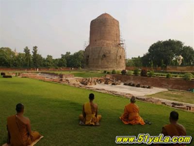 鹿野苑,即 Sārnāth,曾名為 Mrigadava、Rishipattana、Isipatana,位于印度北方邦瓦拉那西以北約10公里處,是釋迦牟尼成佛后初轉(zhuǎn)法輪處,佛教的最初僧團(tuán)也在此成立。鹿野苑是佛教在古印度的四大圣地之一。Mrigadava 意為鹿園;Isipatana 常見于巴利藏,意為圣者來(lái)臨之地。Sārnāth 源自 Sāranganātha,意為鹿王。在一個(gè)佛教典故中,菩薩化現(xiàn)為鹿王,為了保護(hù)鹿群,將自己獻(xiàn)給國(guó)王,國(guó)王也因此感動(dòng),建立了公園,以保護(hù)鹿群。