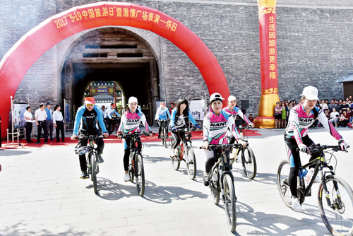 活動(dòng)中,旅行社代表發(fā)言,旅行社導(dǎo)游集體宣誓,旅行社負(fù)責(zé)人和導(dǎo)游集體簽署文明旅游承諾書(shū)。啟動(dòng)了捷安特騎行隊(duì)騎游??h文化藝術(shù)館舉辦了“激情廣場(chǎng)表演——懷舊專(zhuān)場(chǎng)”演出,節(jié)目有舞蹈、獨(dú)唱、晉劇選段、吉他彈奏、勁舞、歌伴舞、詩(shī)朗誦、水兵舞、旗袍秀等,贏得現(xiàn)場(chǎng)觀眾陣陣熱烈的掌聲,將“5·19中國(guó)旅游日”宣傳活動(dòng)推向了高潮。圖為捷安特騎行隊(duì)出發(fā)騎游(石俊文 攝影報(bào)道)