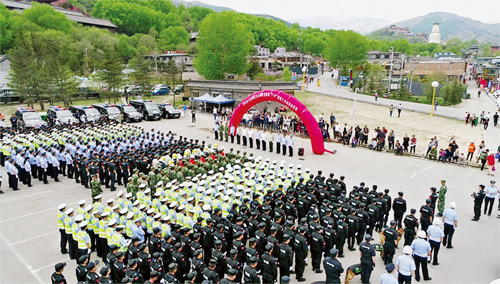 為了擦亮佛教圣地五臺山這個旅游窗口,打造形象五臺山,忻州市公安局部署從今年5月1日起至10月31日,在五臺山風(fēng)景區(qū)開展流動人口暨治安秩序大整治(即兩項整治)工作,從秩序安全、流動人口管理、治安、交通和消防等5大類33個層面對五臺山風(fēng)景區(qū)進(jìn)行集中整治。時值“兩項整治”進(jìn)入高潮之際,五臺山迎來了“5.19”中國旅游日,忻州市公安局黨委將此次“5.19”治安工作作為“兩項整治”的第一次大考,當(dāng)作首次檢驗整治機(jī)制、設(shè)施、效果和隊伍的絕佳機(jī)會。為此,市公安局從市局、五臺山風(fēng)景區(qū)、五臺縣、繁峙縣、原平市、代縣等地和武警、消防、保安公司抽調(diào)精干警力和安保人員組成執(zhí)勤隊伍。18日下午,市公安局在五臺山景區(qū)舉行戰(zhàn)前動員會。動員指出:省、市黨委政府高度重視五臺山工作,忻州公安要提高政治站位抓安保;“5.19”安保是對全市公安機(jī)關(guān)戰(zhàn)斗力的一次綜合檢驗,是十九大前的一次安保實兵演練,要堅定必勝信心抓安保;此次安保意義重大,要發(fā)現(xiàn)差距,總結(jié)經(jīng)驗,固化機(jī)制,為五臺山形成安全穩(wěn)定暢通有序的長效安保機(jī)制打下基礎(chǔ)。