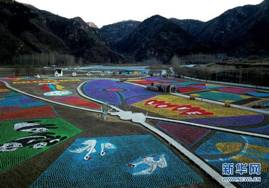 從空中俯瞰北京市密云區(qū)車道峪村用風(fēng)車打造的主題景觀(12月5日攝)。近日,北京市密云區(qū)車道峪村村民用約120萬只風(fēng)車,打造出一片占地500畝的“風(fēng)車?!?,包含多個主題。該景觀于12月8日正式亮相。新華社記者 羅曉光 攝