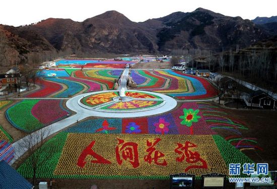 從空中俯瞰北京市密云區(qū)車道峪村用風車打造的“人間花海”主題景觀(12月5日攝)。近日,北京市密云區(qū)車道峪村村民用約120萬只風車,打造出一片占地500畝的“風車?!?,包含多個主題。該景觀于12月8日正式亮相。新華社記者 羅曉光 攝