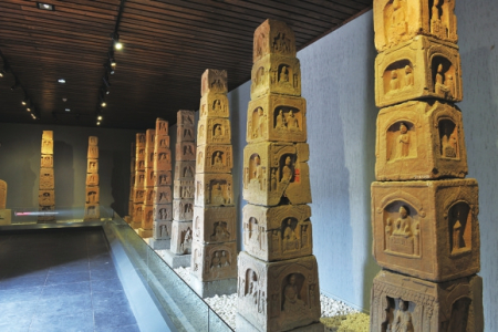 走進(jìn)長(zhǎng)治市博物館,仿佛進(jìn)入了歷史的長(zhǎng)廊,從創(chuàng)世之初、石之美者、塑土成陶、晶玉之瓷到吉金佳器,5個(gè)單元的館內(nèi)陳列展覽盡顯了長(zhǎng)治古老的文明。其中的“創(chuàng)世之初”主要反映早期人類在長(zhǎng)治地區(qū)的生產(chǎn)生活痕跡。展品有義和、花坡兩處舊石器時(shí)代文化遺址和多處新石器時(shí)代文化遺址,表明了長(zhǎng)治是中華文明的早期發(fā)祥地之一?!笆勒摺标惲械挠袷褡炼傻钠魑铮饕鐾劣谖髦?、春秋、戰(zhàn)國(guó)墓葬中,種類豐富,精美非凡。多為祭祀、禮儀、裝飾、陳設(shè)用品,有極高的歷史價(jià)值和藝術(shù)價(jià)值?!八芡脸商铡闭龟惖奈奈镏饕翘掌鳎瑥男率鲿r(shí)代遺址中出土的體現(xiàn)“龍山文化”特色的陶器,到商代、漢代,直至隋唐之際的陶器,時(shí)間跨度非常之大。種類涵蓋飲食器、貯藏器等生活實(shí)用器和專為殉葬而制作的各類明器。尤其是用作明器的三彩陶器,凡與死者在世生活有關(guān)的如建筑、家具、牲畜和人物等無(wú)不具備,包羅萬(wàn)象,真實(shí)再現(xiàn)了當(dāng)時(shí)各個(gè)階層人士的不同生活面貌?!熬в裰伞闭龟惖挠兴宕那啻善鳌⑻拼陌状?,以及宋、金、元代的瓷器。據(jù)介紹,珍藏的宋、金、元時(shí)期瓷器品種數(shù)量多,南、北窯系均有,主要以霍州窯和磁州窯系列為主,其中,長(zhǎng)治的八義窯(磁州窯系)生產(chǎn)的紅綠彩瓷是我國(guó)北方地區(qū)較具特色的釉上彩瓷?!凹鸺哑鳌闭故镜膭t是青銅器,以商、周器物為主。長(zhǎng)治出土的商代器物與二里崗、殷墟時(shí)期銅器風(fēng)格一致,表明了晉式銅器的精美藝術(shù)造型和高超的工藝水平。