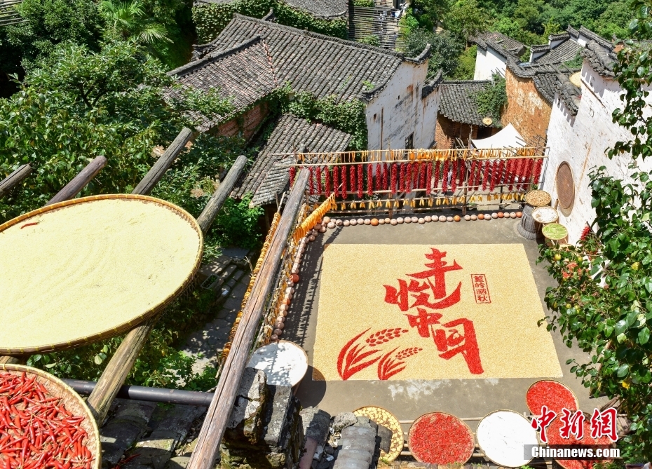 由于婺源的大多村莊是依山而建,平地較少,為將晾曬的食材安排的合理妥當(dāng),家家戶戶都展現(xiàn)了自家“空間管理”的高超技巧。圖為江西上饒婺源篁嶺古村,篁嶺獨具古韻的閣樓人家,處處可見絢爛的曬秋。稻谷、玉米、南瓜、豌豆、蘿卜曬在竹匾上,用橫木托著。