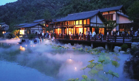 也許人們對江西葛仙村真實(shí)的模樣知之甚少,但葛仙村度假區(qū)并不因此而黯淡,它更樂于在云水深處、在桃源林里,遠(yuǎn)離紛爭。如用詩詞來概括度假區(qū)之環(huán)境、情境、意境,那就是:仙山仙谷臥仙村,仙居仙閣停仙云。仙翁仙子尋仙樂,仙池仙境歸仙魂。