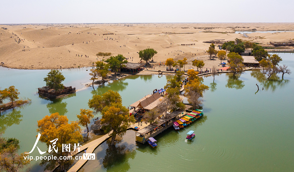 處于塔克拉瑪干沙漠邊緣的尉犁縣羅布人村寨是一個以民俗文化、探險旅游為特色,集沙漠、胡楊、河流、湖泊于一體的旅游區(qū)。汪志鵬攝(人民圖片網(wǎng))