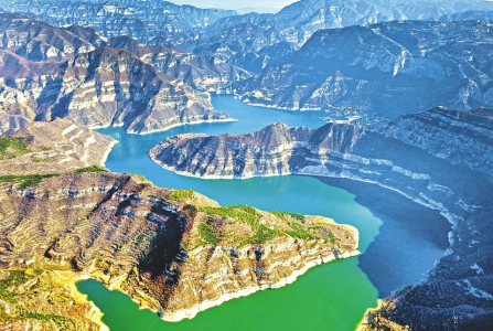 10月21日,在太原汾河二庫(kù)風(fēng)景區(qū),群山環(huán)繞于曲折迂回的水庫(kù)周?chē)?,雄險(xiǎn)奇秀,水清柔碧綠。如畫(huà)山水間,獨(dú)特的峽谷風(fēng)光十分壯觀。