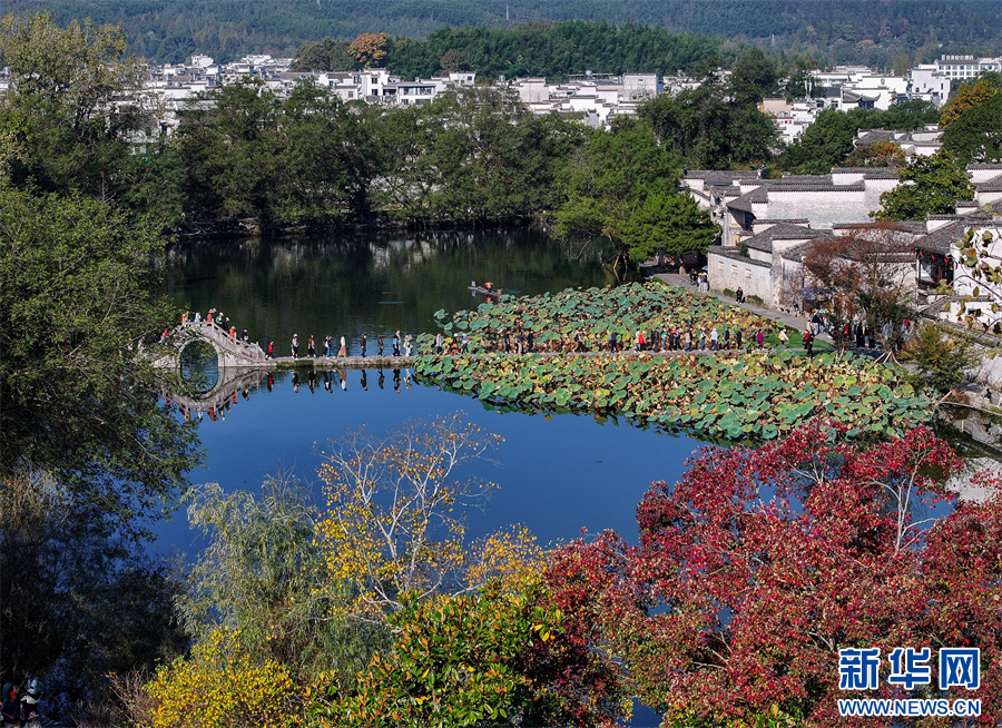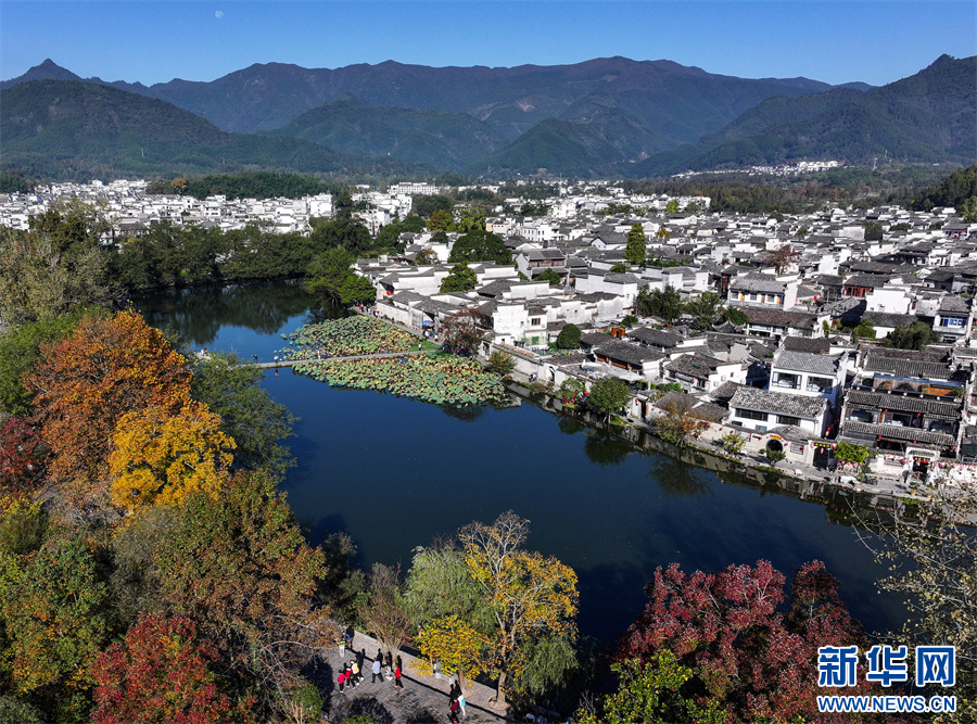 11月1日,在安徽省黃山市黟縣宏村拍攝的秋日風(fēng)景。(無人機照片)