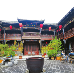 這是一處坐落于平遙古城景區(qū)西南門頭街的五星級(jí)民俗客棧,步行200米可達(dá)古城墻、明清一條街、縣衙博物館等景點(diǎn)?!霸鹤?,既是一個(gè)居住空間,也是一個(gè)安放心靈的空間。從設(shè)計(jì)開(kāi)始我們便努力滿足人們對(duì)晉商文化、大院文化、建筑審美等方面的精神需求。”10月17日,客棧負(fù)責(zé)人安琪介紹說(shuō)。