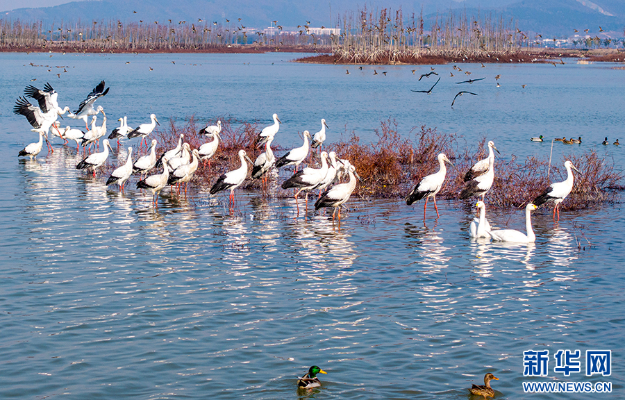 近年來(lái),廬江縣加大黃陂湖濕地保護(hù)力度,4萬(wàn)多畝的濕地環(huán)境得到較大改善。每年冬季,東方白鸛、白鶴等大量珍稀候鳥(niǎo)都按時(shí)來(lái)此過(guò)冬,萬(wàn)鳥(niǎo)齊飛的壯觀場(chǎng)面已經(jīng)成為廬江縣黃陂湖濕地最靚麗的風(fēng)景。新華網(wǎng)發(fā)(左學(xué)長(zhǎng) 攝)