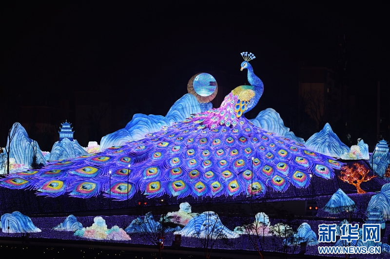 圖為1月13日拍攝的《孔雀合屏》燈組。新華網發(fā)(曹鵬 攝)
