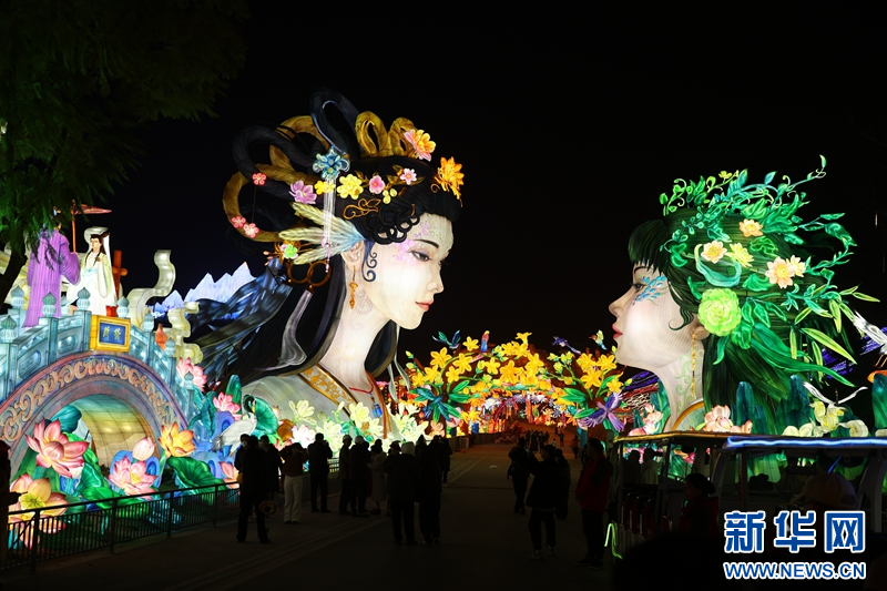 圖為1月13日拍攝的《青城雙姝》燈組。新華網發(fā)(曹鵬 攝)