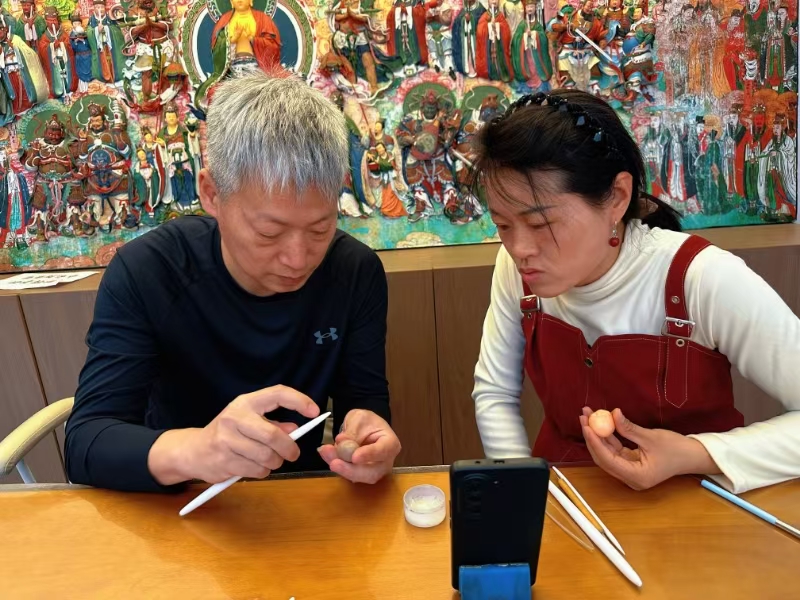 “在這條街上,聚集了很多和我一樣的手藝人。”大海面塑所在的關(guān)帝廟北巷文創(chuàng)街上,一家家非遺店鋪林立——葫蘆烙畫店鋪內(nèi),忻州市忻府區(qū)葫蘆烙畫非物質(zhì)文化遺產(chǎn)代表性傳承人李云珍正手拿烙鐵在葫蘆上創(chuàng)作《八駿圖》;“草木染”非遺體驗(yàn)店里,有游客在體驗(yàn)扎染的樂(lè)趣;鋦藝?yán)?,游客圍在忻州市忻府區(qū)鋦瓷藝術(shù)非物質(zhì)文化遺產(chǎn)代表性傳承人王克劍身邊,看一件破碎的瓷器如何經(jīng)過(guò)他的雙手重生……