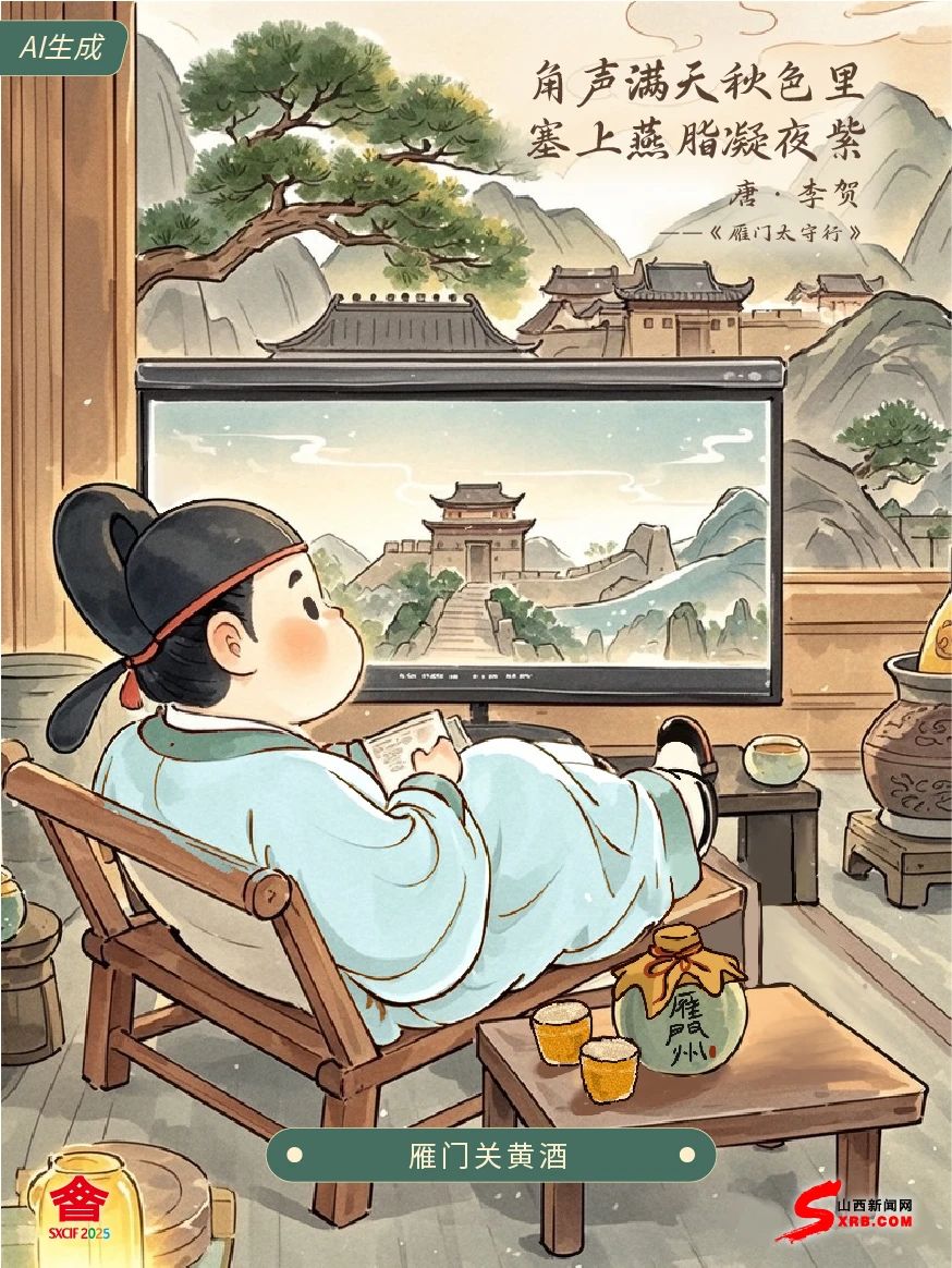 好久不見(jiàn),我是李賀 那年秋天,雁門關(guān)下 戰(zhàn)爭(zhēng)的號(hào)角嗚嗚咽咽 城墻的泥土在暮色下染作一片紫霞 如今,國(guó)泰民安四海升平 我終于能悠悠喝著黃酒 透過(guò)文博會(huì)那神奇的大屏幕 好好欣賞雁門關(guān)的壯闊美景