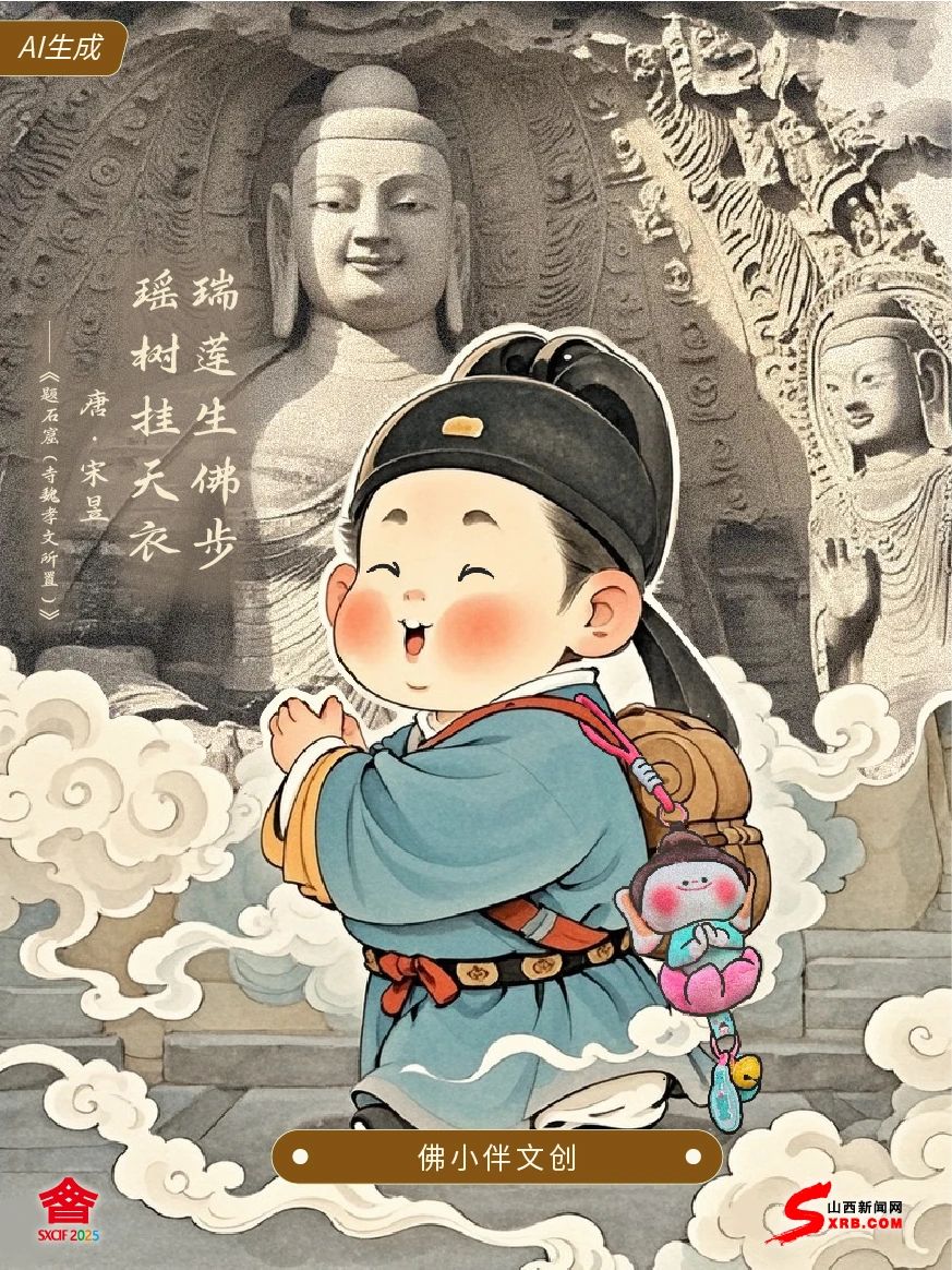 我是宋昱 你可能不認(rèn)識(shí)我 但你一定聽(tīng)過(guò)我筆下的云岡石窟 佛寺巍峨寬廣,金碧輝煌 香案雕琢精美,眾靈在云端飛舞 文博會(huì)上 背包上晃悠著“佛小伴”的掛件 在展會(huì)流轉(zhuǎn)的光影之中 仿佛看見(jiàn)蓮花在佛陀腳下悄然生長(zhǎng)