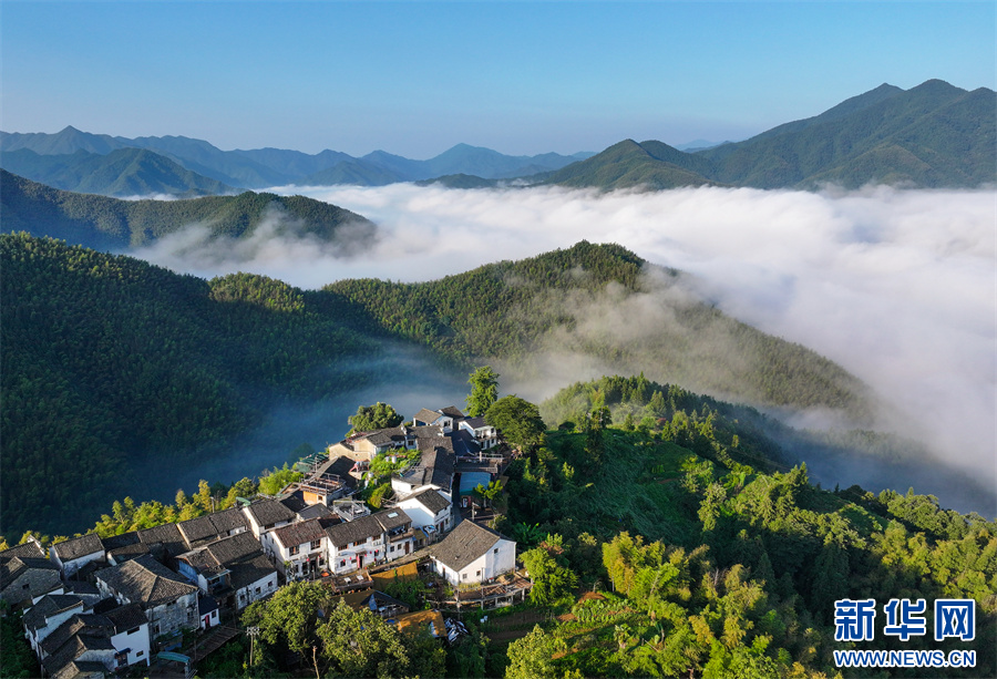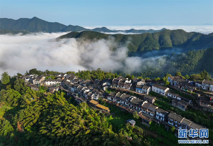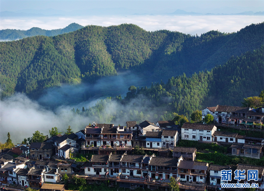 當(dāng)日,雨后初霽的安徽省黃山市休寧縣溪口鎮(zhèn)木梨硔村出現(xiàn)磅礴壯美的云海景觀。連綿的群山與漂浮的云海環(huán)抱著依山而建的徽派古村落,勾勒出一幅絕妙的秋日水墨畫(huà)卷。新華網(wǎng)發(fā)(施亞磊 攝)