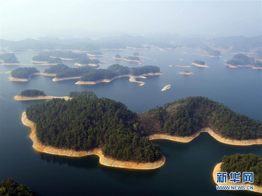 這是3月15日航拍的千島湖風景區(qū)。千島湖位于浙江省杭州市淳安縣境內,是建設新安江水電站攔水筑壩而形成的人工湖,因湖內擁有1078座島嶼而得名。千島湖風光秀美,水質出眾,為著名的旅游景區(qū)。新華社發(fā)(張曉理 攝)