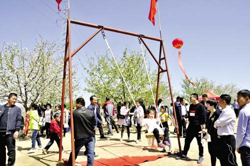 4月23日,為了進(jìn)一步鞏固脫貧成效,提升鄉(xiāng)村旅游品牌效應(yīng),展示當(dāng)?shù)靥厣r(nóng)產(chǎn)品和黃土高原的風(fēng)土人情,保德縣楊家灣鎮(zhèn)段家溝村隆重舉辦了首屆美麗鄉(xiāng)村賞花攝影節(jié)。圖為前來賞花的游客正在蕩秋千。(劉澤宇 攝) (責(zé)任編輯:李冬梅) |