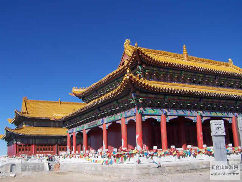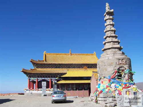 五臺山中臺翠巖峰,又名平頂山,海拔2894米,居東、西、南、北四臺的中心,也是四臺的發(fā)脈之祖,臺頂面積也最大。《清涼山志》云:“巔巒雄曠,翠靄浮空”。其山勢酷似一頭挺立的雄獅。臺頂寺院名作演教寺,內供孺童文殊。