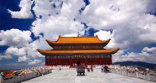 夏日的中臺頂青綠如黛,碧如翡翠,猶似一堆巨大的祖母綠。游人走累了,躺在細若絲絨、猶若天然地毯的青草上,面向天空,感覺天藍藍的,云柔柔的,風輕輕的,特別清爽。飄動著的白云,千變萬化地追蹤著人們的足跡,還癡癡地纏繞在身前身后,讓人如置身仙境,美妙異常。