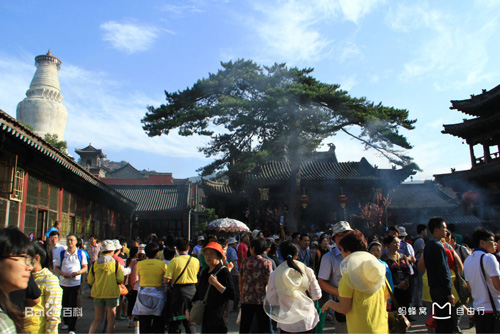 五爺廟也稱萬佛閣座落于臺懷鎮(zhèn),與大白塔相毗鄰,是通往顯通寺的又一條路徑。寺廟地勢開闊,當年是大清歷代皇帝朝臺寢宴的行宮,俗稱“皇城”?!盎食恰敝寥f佛閣之間,終年涌動著接踵而至的羲圣觀光者。