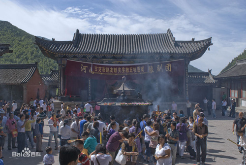 五爺廟里殿內(nèi)供奉的五爺是廣濟龍王文殊菩薩的尊稱,也是五臺山五頂文殊菩薩的化身,因而,這里是整個五臺山香火最盛的寺廟。而事實上,應該說五爺其實就是文殊菩薩在臺懷本土化,世俗化的產(chǎn)物,它承擔起了民間俗神的職能,寄托著當?shù)匕傩掌砼物L調(diào)雨順、平安吉祥的愿望。也許正是因為五爺比起其他各大寺院里莊嚴肅穆的菩薩們更親近群眾,更符合急功近利的眾生心愿的緣故吧,小小的五爺廟,在善男信女們的心目中,它幾乎成了有求必應的象征,上五臺山燒香的人大部分都是沖著五爺廟去的。在群眾心目中,他們不懂什么佛理,甚至不知道文殊菩薩,但只要一說五爺廟,則遠近聞名,幾乎成了五臺山的一張名片。