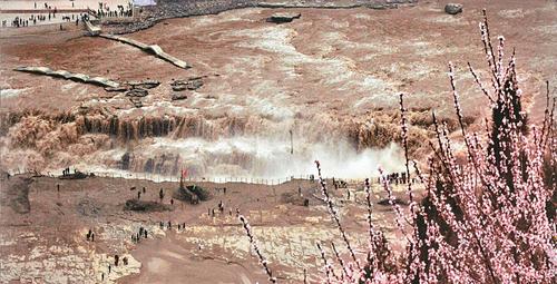 3月19日,隨著氣溫不斷回升,黃河上游融冰開(kāi)河。壺口瀑布水量驟增,流量達(dá)到每秒2440m3,迎來(lái)了一年一度的“桃花汛”。當(dāng)日,瀑布群猶如萬(wàn)馬奔騰齊嘶鳴,頗為壯觀。由于陜西宜川黃河景區(qū)地勢(shì)較低,大量的河水臨時(shí)涌進(jìn)主副瀑布,為了安全,游人暫時(shí)不能近距離觀看。
