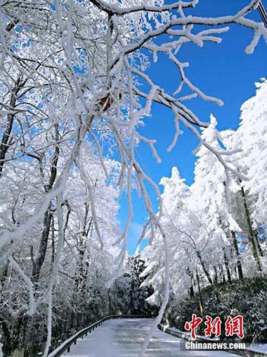 湖北現(xiàn)“林海雪原” 銀裝素裹風(fēng)景如畫