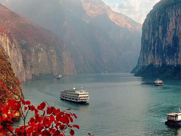 游船駛過(guò)秀美的長(zhǎng)江三峽