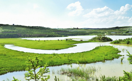從右玉縣城出發(fā),向北行駛10公里,即達右玉蒼頭河國家濕地公園。進入公園,一片綠色的海洋,只見盤纏交錯的梧柳,旺盛的蘆葦叢,多年生長的灌木、沙棘,郁郁蔥蔥。林中百鳥歡唱,各種珍稀動物出沒林間。在木棧道、文化長廊、蒼頭河兩岸等處,游客絡(luò)繹不絕,有的拍照留念,有的駐足觀景,陶醉其中。
