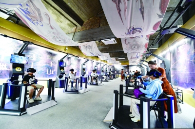 7月22日,游客線下體驗(yàn)“尋境敦煌——數(shù)字敦煌沉浸展”。 “尋境敦煌”綜合運(yùn)用虛擬現(xiàn)實(shí)、三維建模、游戲引擎的物理渲染和全局動(dòng)態(tài)光照等新技術(shù),高精度立體還原了莫高窟第285窟。游客戴上VR眼鏡,不僅可以零距離觀賞壁畫、360度自由探索洞窟細(xì)節(jié),還能“飛升”到窟頂,身臨其境參與壁畫故事情節(jié),沉浸式感受敦煌文化的魅力。 新華社記者 郎兵兵/攝