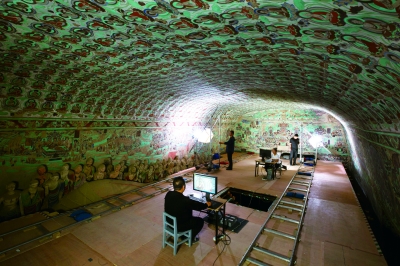 莫高窟第148窟數(shù)字化采集工作現(xiàn)場(chǎng)。