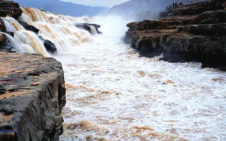 走近瀑布,可以感受到水霧輕輕拂過臉頰,帶來一絲絲涼意。黃河水從高處緩緩落下,濺起層層細膩的水珠,它們在陽光的照射下閃爍著晶瑩的光芒,如同細密的珠簾懸掛于山谷之間。站在瀑布邊,聆聽著水流的潺潺聲,讓人不禁沉醉于這份寧靜與壯美之中。