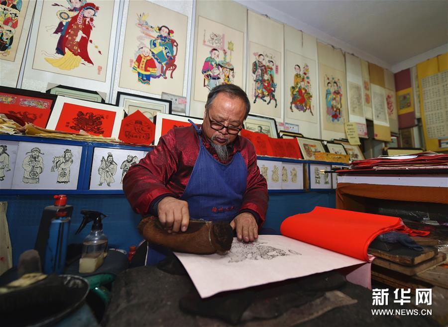 春節(jié)期間,山西省新絳縣的絳州木版年畫傳承人吳百鎖忙得不可開交,來購買“吉祥如意”“雄雞一唱天下白”等主題年畫的顧客絡繹不絕。山西省非物質文化遺產絳州木版年畫發(fā)端于宋金,興盛于明清,從選料到雕刻再到上色都非常講究,一幅年畫的制作需要七八道精細工序。隨著時代的變遷,目前已鮮有專職雕刻、印制年畫的匠人。擁有嫻熟雕刻技藝的吳百鎖在傳承傳統(tǒng)工藝的基礎上,積極創(chuàng)作現代題材的作品,希望通過自己的創(chuàng)新讓更多少年兒童了解并愛上木版年畫,讓這門幾乎失傳的技藝綻放新的光彩。新華社記者 曹陽 攝